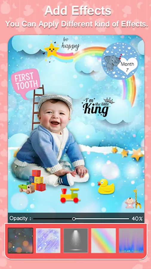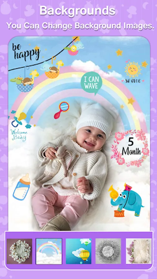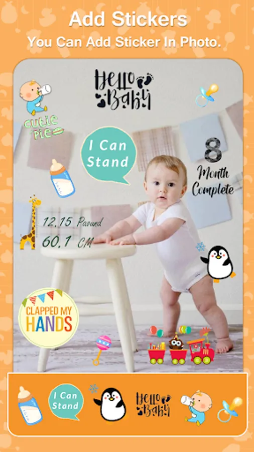 Baby Photo Editor can be also used as a Baby Stories Maker, Baby’s Milestone Picture Maker, New Born Baby Photo Maker, Pregnancy Milestone Maker.