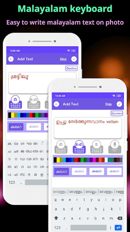 • Using Malayalam Keyboard you can write Malayalam text on your photo also set text color and font to make your text more effective.