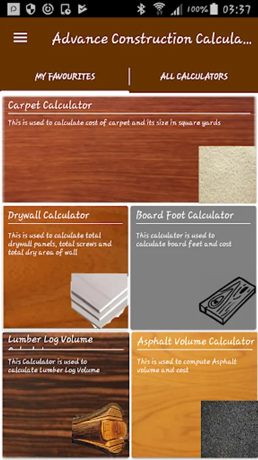 This app includes all calculators including all the calculator for constructions. The application includes the following calculators with interactive interface.