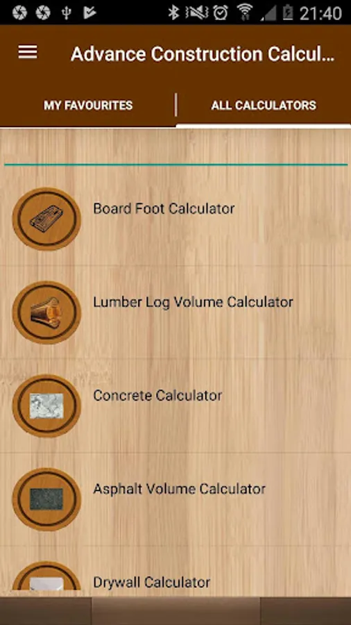This app includes all calculators including all the calculator for constructions. The application includes the following calculators with interactive interface.