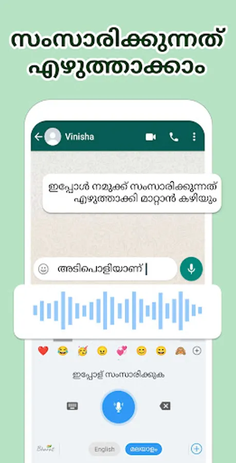 - Voice to Text app: Just say and the Keyboard will type Malayalam for you.