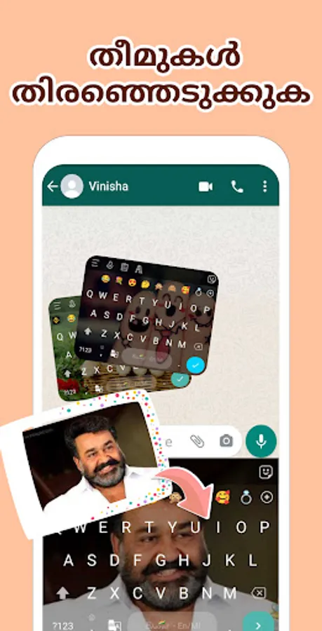 - Explore new themes and make your own theme with your pictures with Malayalam Keyboard App.