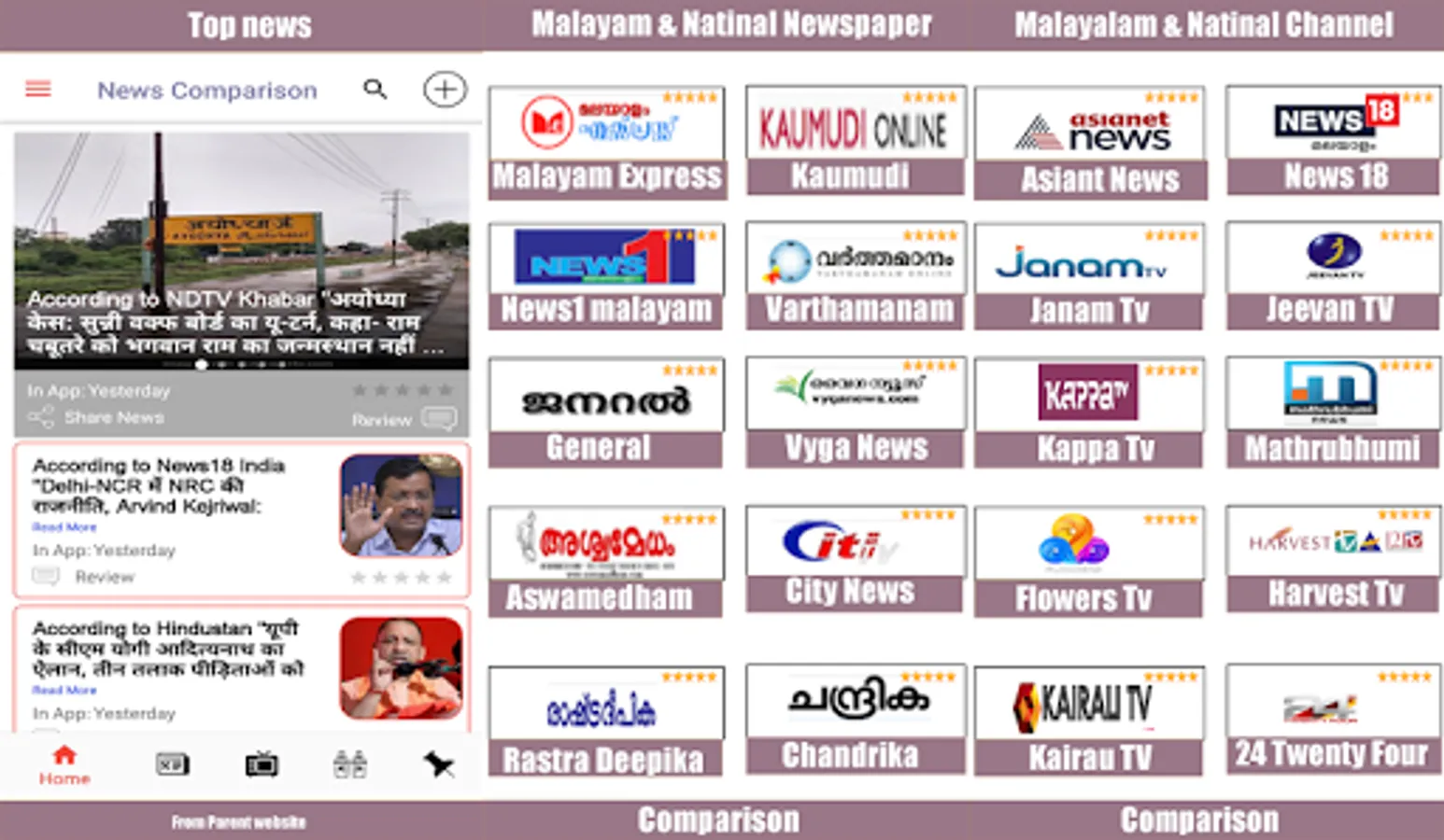 Malayalam News Channel Live TV app is also provide the News Debate Comparison.