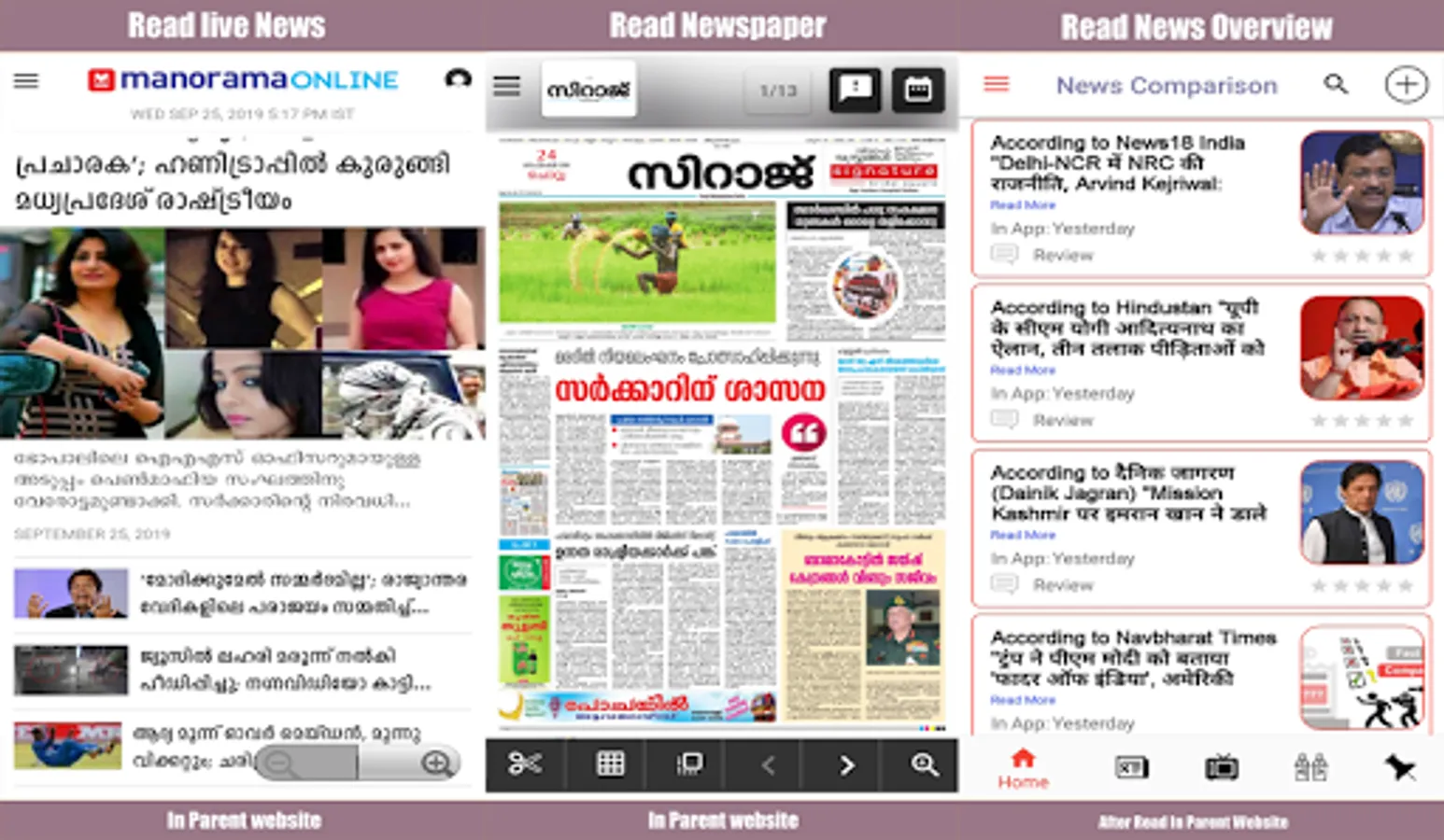 By using the Malayalam News Papers App with is a best aggregator of Malayalam News Live TV media as well national and regional News provider. If you just not read News but also Check the Reliability of News than just login to the app and use the News review functionality.