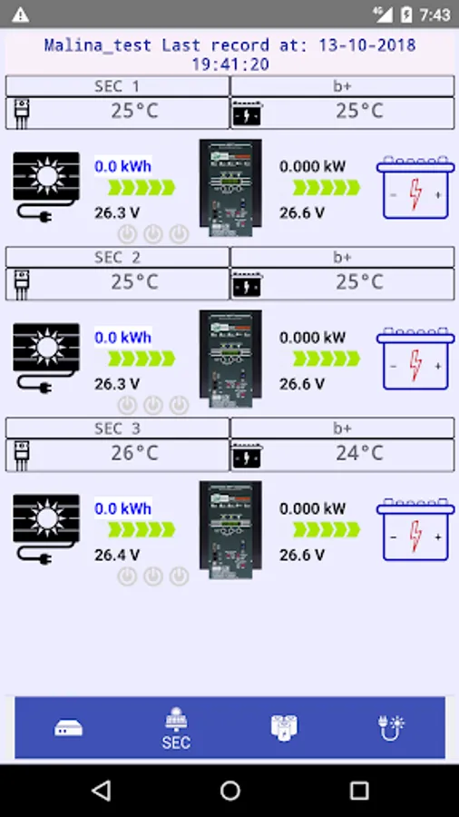 MAC inverter, SEC MPPT controller, BMS through MalinaCloud service