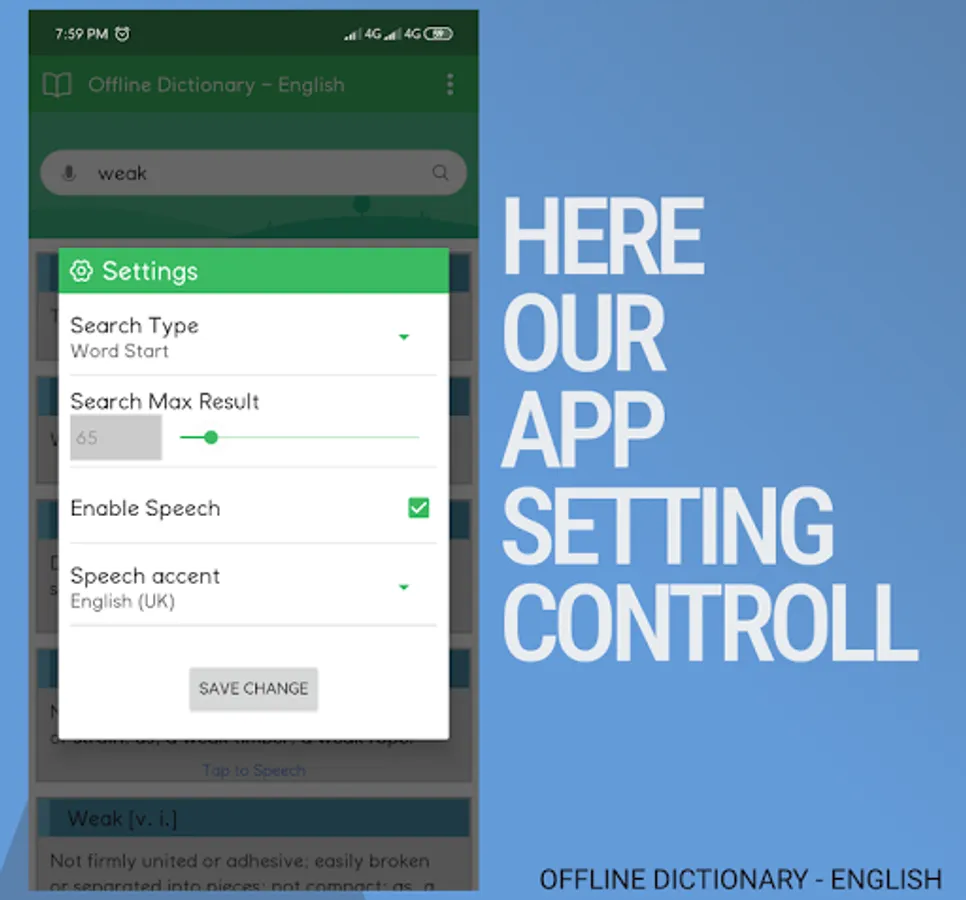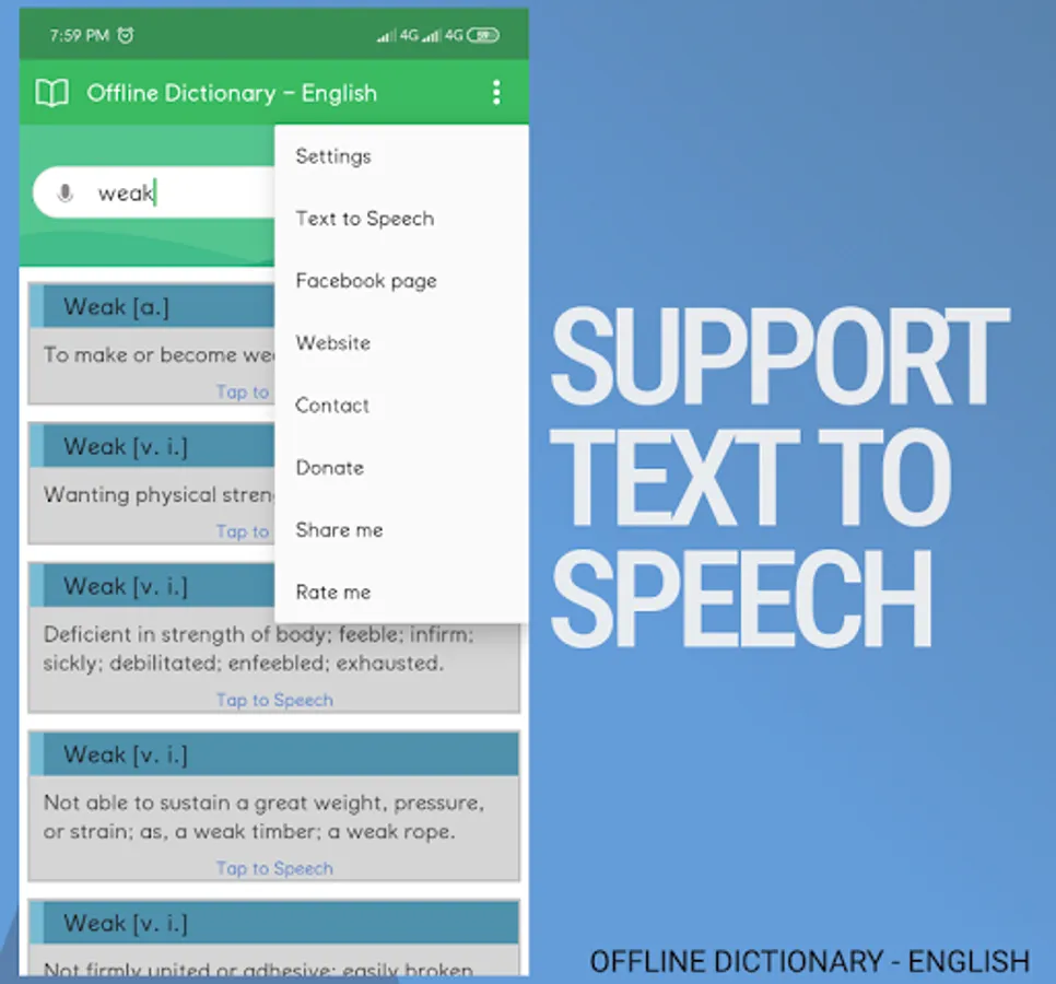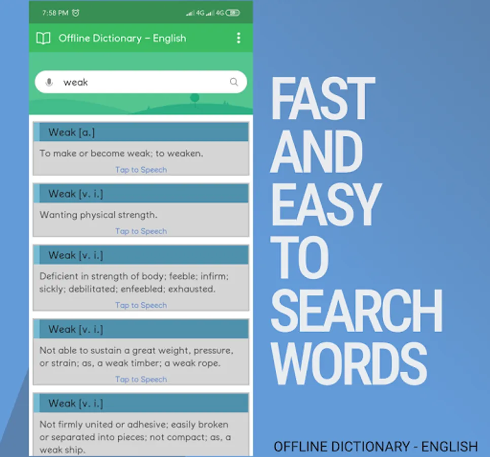 Offline Dictionary - English is free application that improve your English vocabulary.