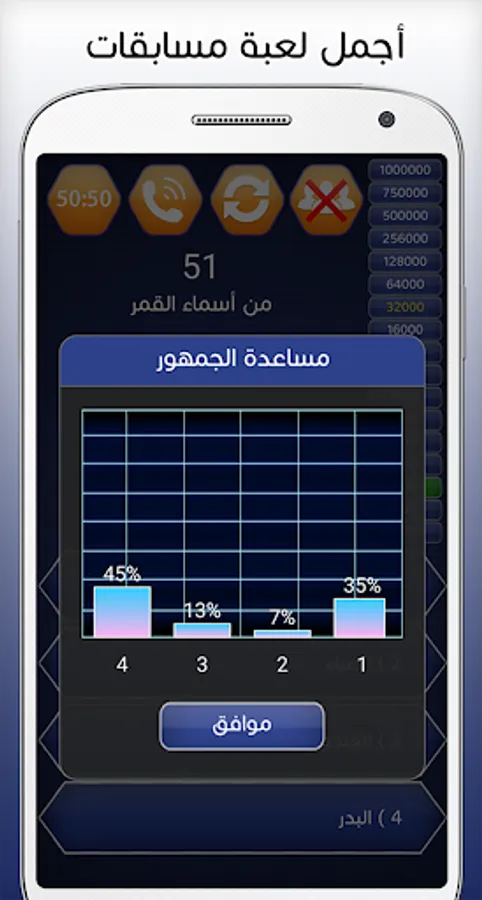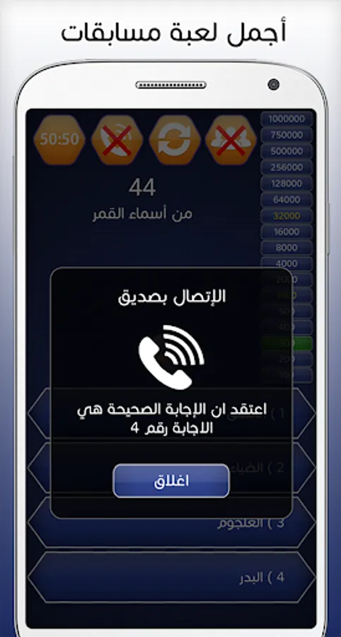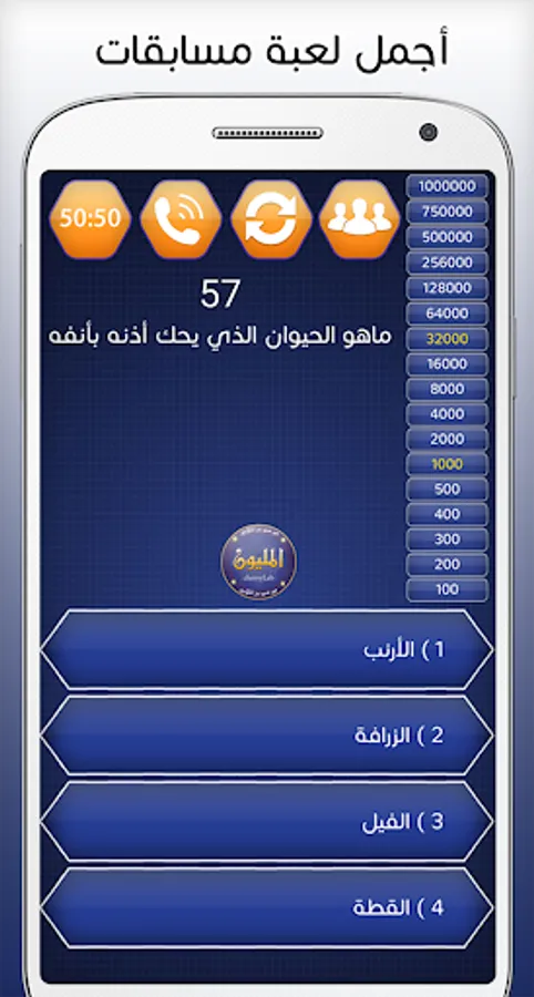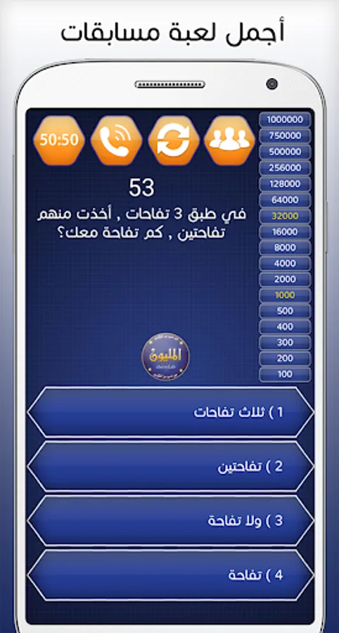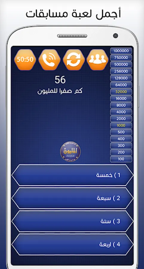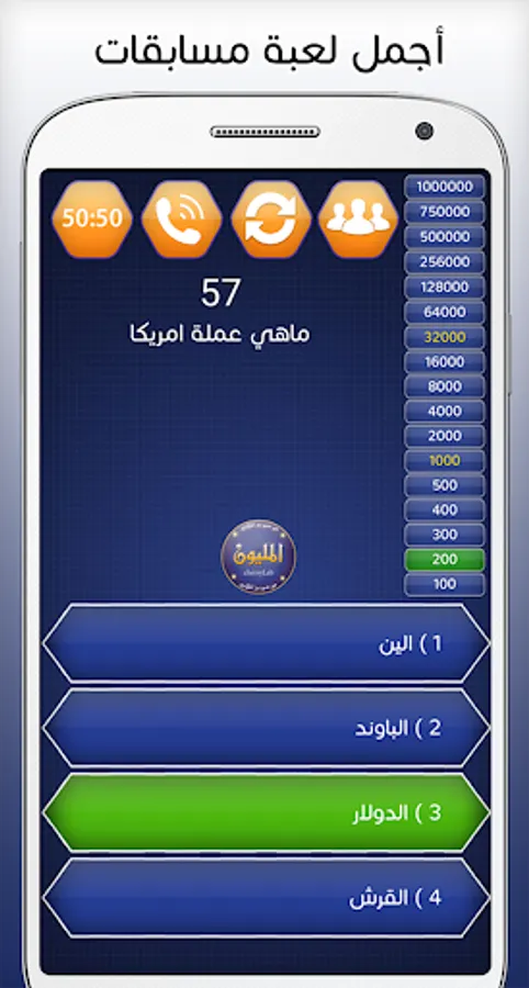The Who Will Win Millions game or the Arab Millionaire game in Arabic gives you more information in various fields such as cultural questions, religious questions, science and literature to strengthen your knowledge and test it for you in addition to educating your self through this application will combine entertainment and acquire many information
