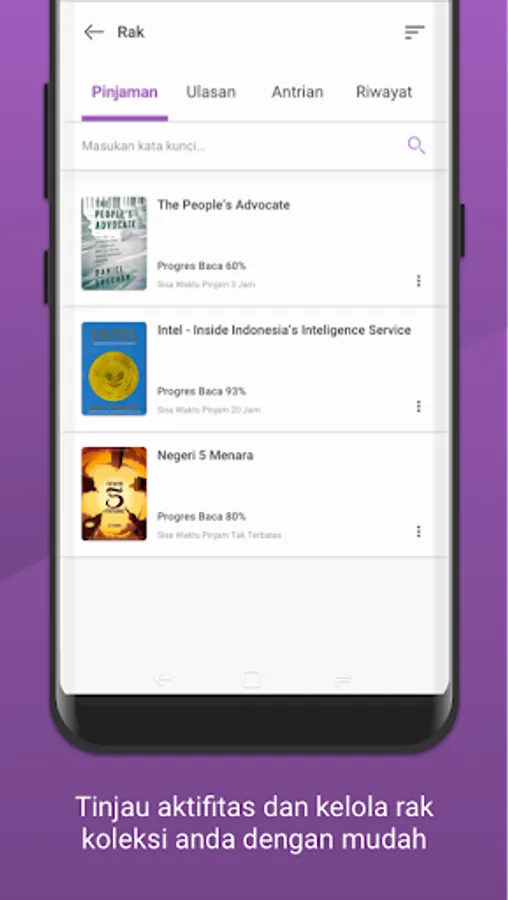 - Book Collection: This is a feature that takes you to explore thousands of ebook titles in iArpusGorontalo. Choose the title you want, borrow it and read it with just your fingertips.