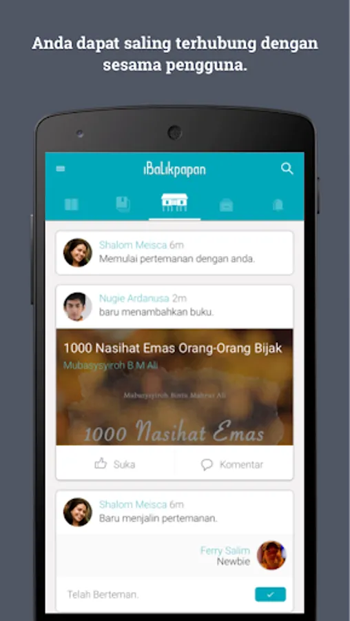 - Feed: To see all activities of iBalikpapan users such as latest book information, books borrowed by other users and various other activities.