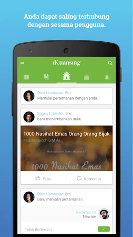 - Feed: To view all activities of IKUANSING users such as information on the latest books, books borrowed by other users and various other activities.