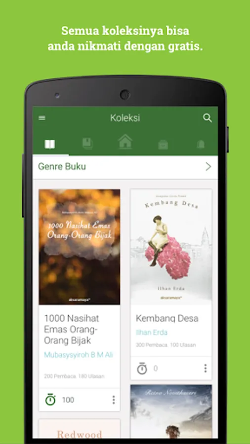 - Book Collection: This is a feature that takes you exploring thousands of ebook titles that are on iMaluku. Choose the title you want, borrow and read with only your fingertips.