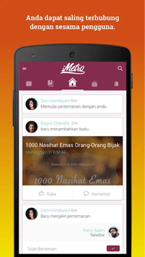 - Feed: To see all the activities of iMetro users, such as the latest book information, books borrowed by other users and various other activities.