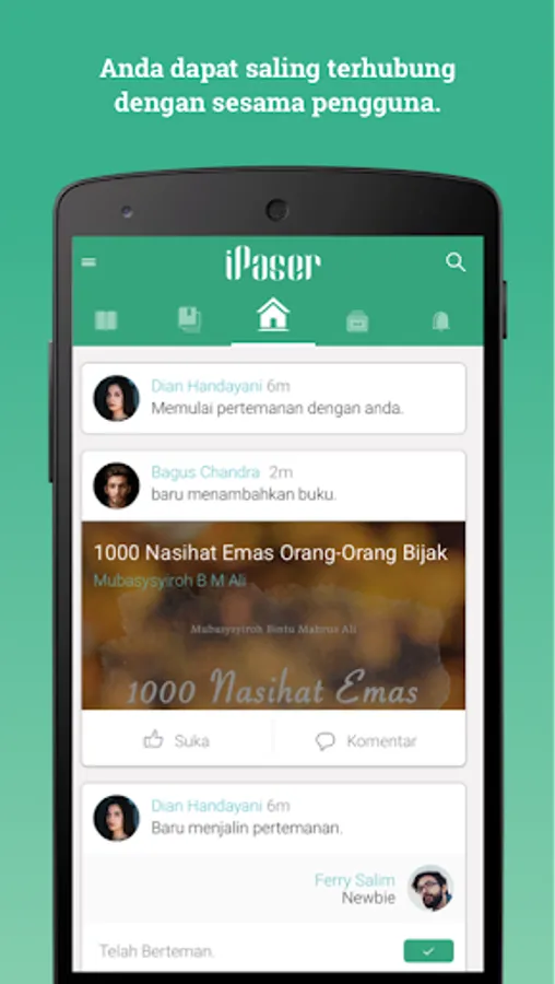 - Feed: To see all the activities of iPaser users, such as the latest book information, books borrowed by other users and various other activities.