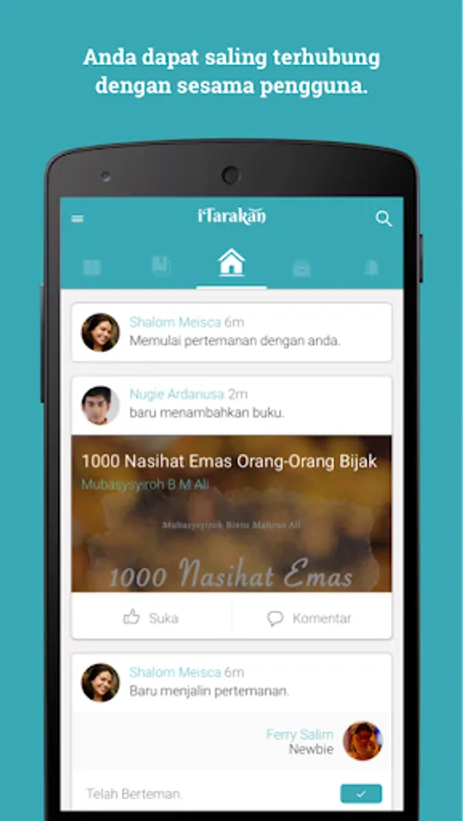 - Feed: To see all iTarakan user activities such as the latest book information, books borrowed by other users and various other activities.