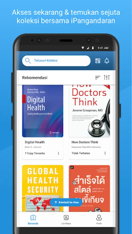 - Koleksi Buku : Ini adalah fitur yang mengantarkan Anda menjelajahi ribuan judul ebook yang ada di IWAWONII. Pilih judul yang Anda inginkan, pinjam dan baca hanya dengan ujung jari Anda.