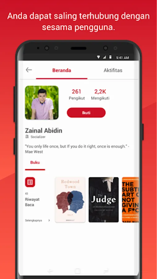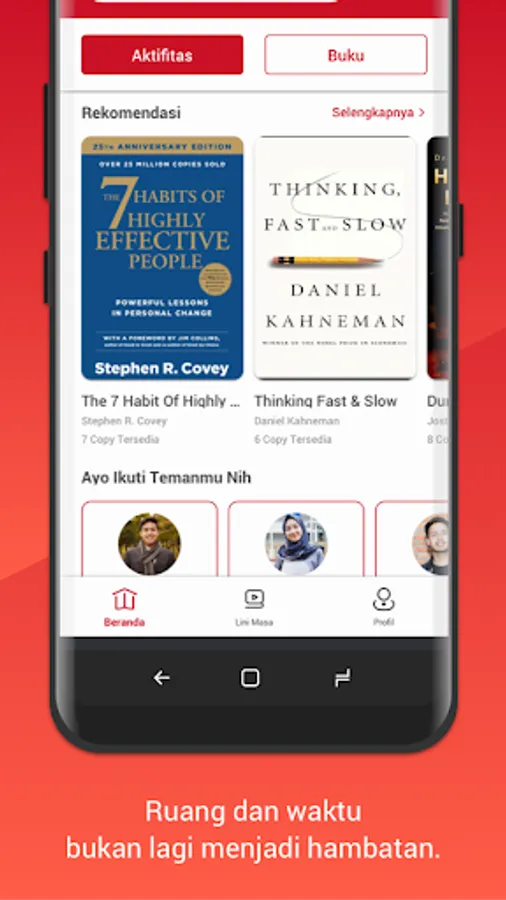 - Feed: To see all the activities of Agara Library users such as information on the latest books, books borrowed by other users and various other activities.