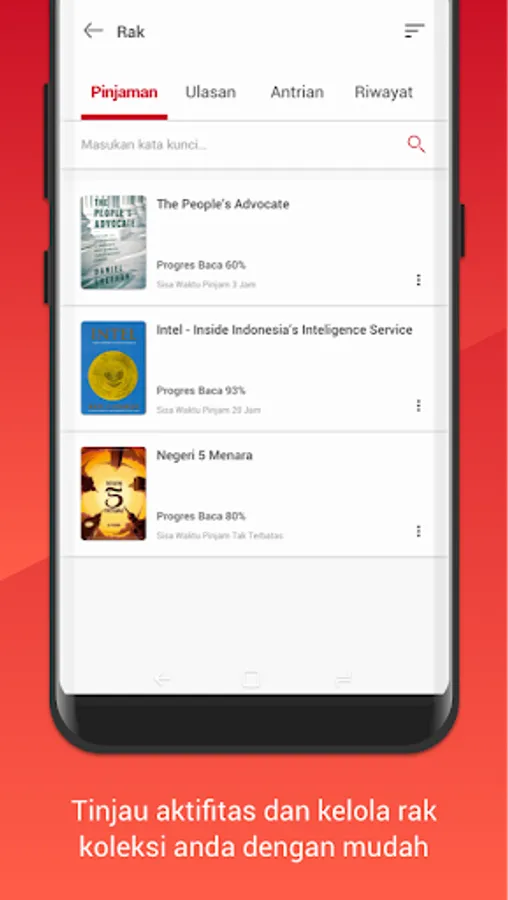 - Book Collection: This is a feature that takes you to explore thousands of ebook titles in the Agara Library. Choose the title you want, borrow it and read it with just your fingertips.