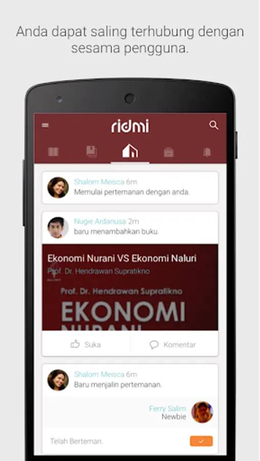 Ridmi is a digital library of application-based offerings Library TICMI social media that comes with eReader to read the ebook. With features of social media, you can connect and interact with other users who are interested in related to the Indonesian Capital Market.