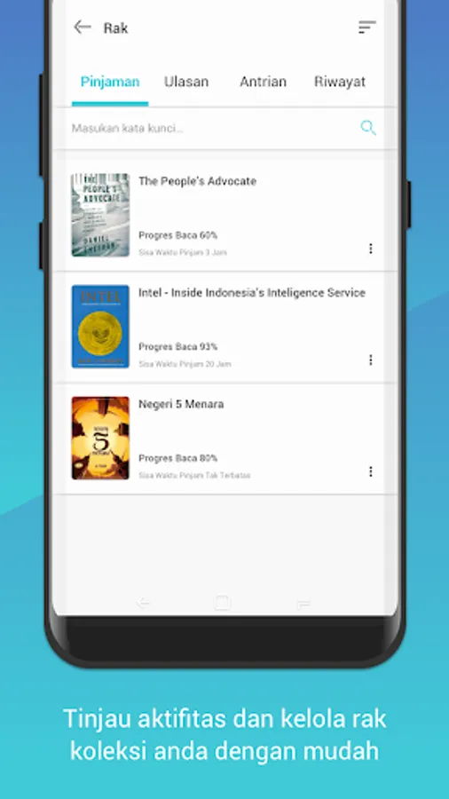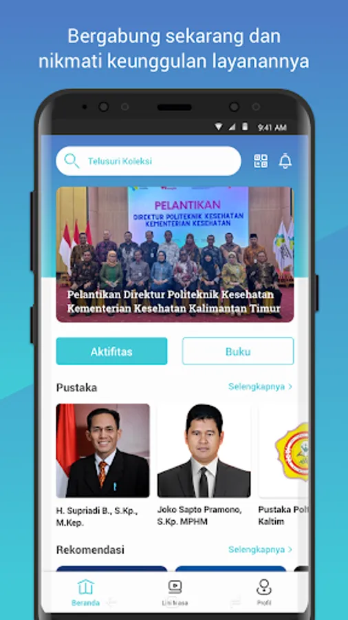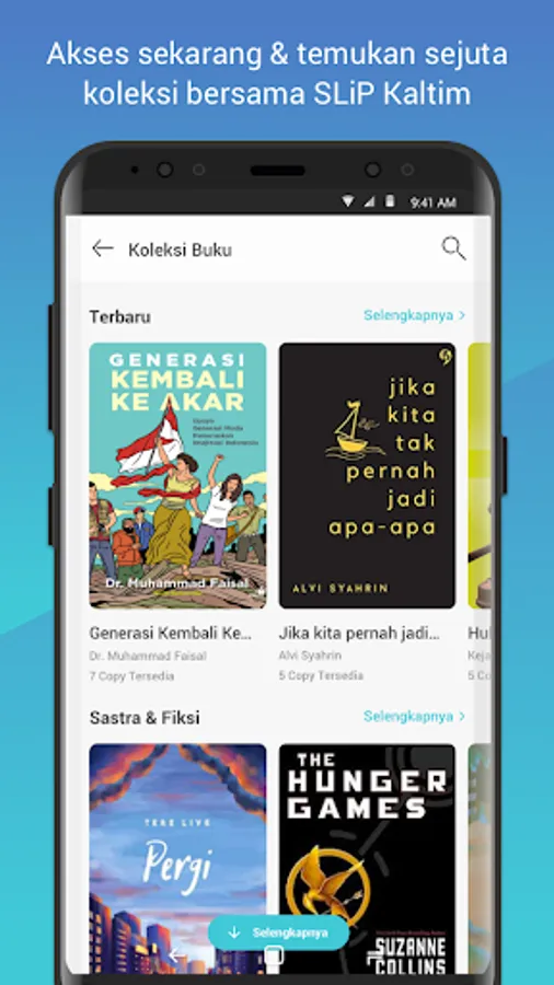 - Book Collection : This is a feature that lets you explore thousands of ebook titles in SLIP KALTIM. Choose the title you want, borrow and read with just your fingertips.