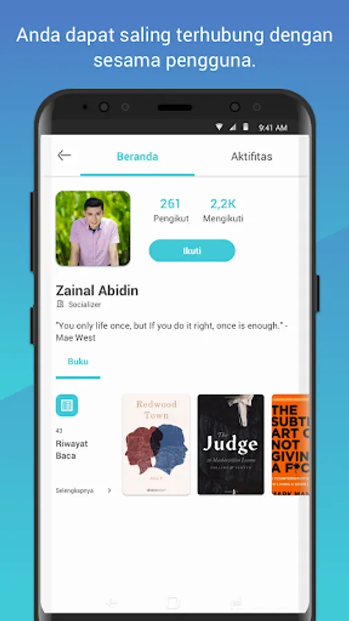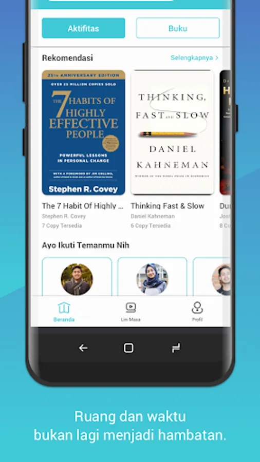 - Feed : To see all activities of SLIP KALTIM users such as the latest book information, books borrowed by other users and various other activities.
