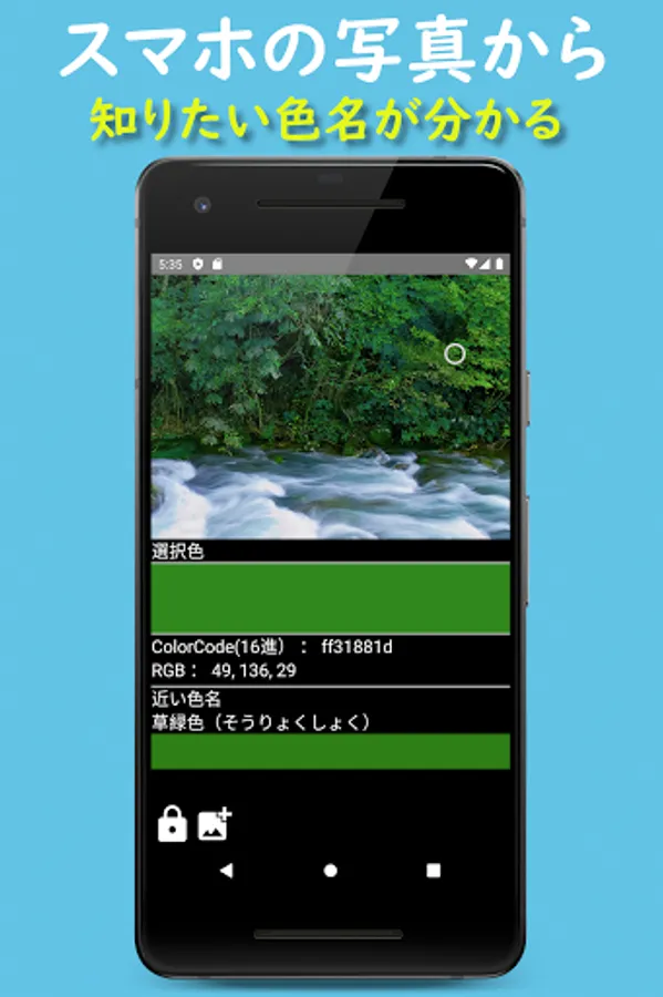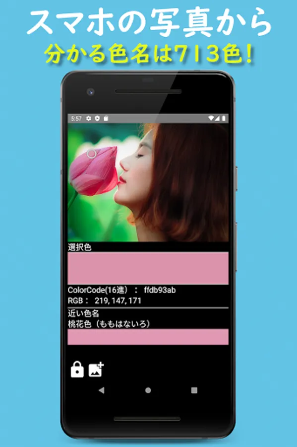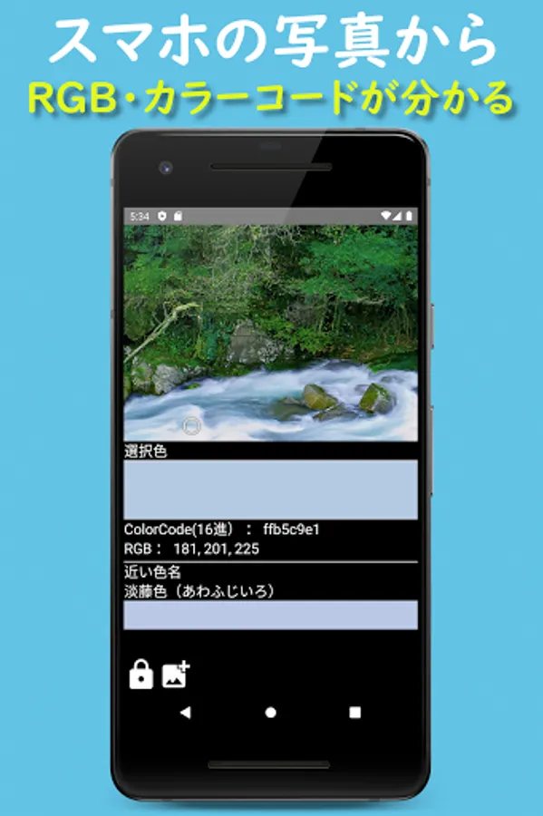 When you select a color from an image, the "Color judgment Naniiro" app displays the color name of the selected color.