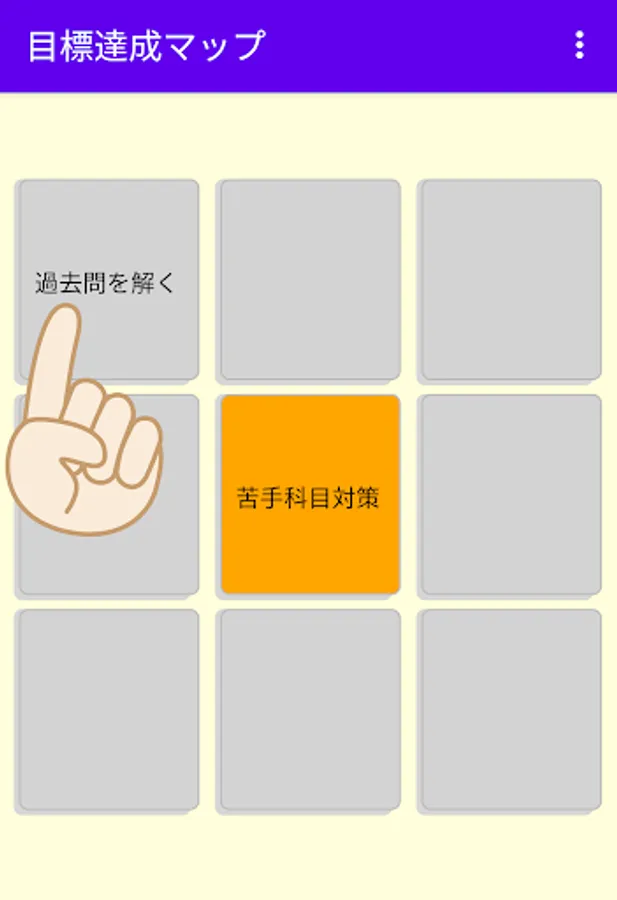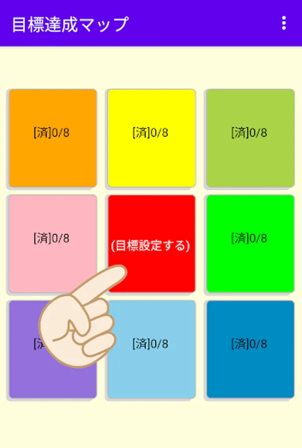・ When you start the app, 9 squares of 3x3 will be displayed.