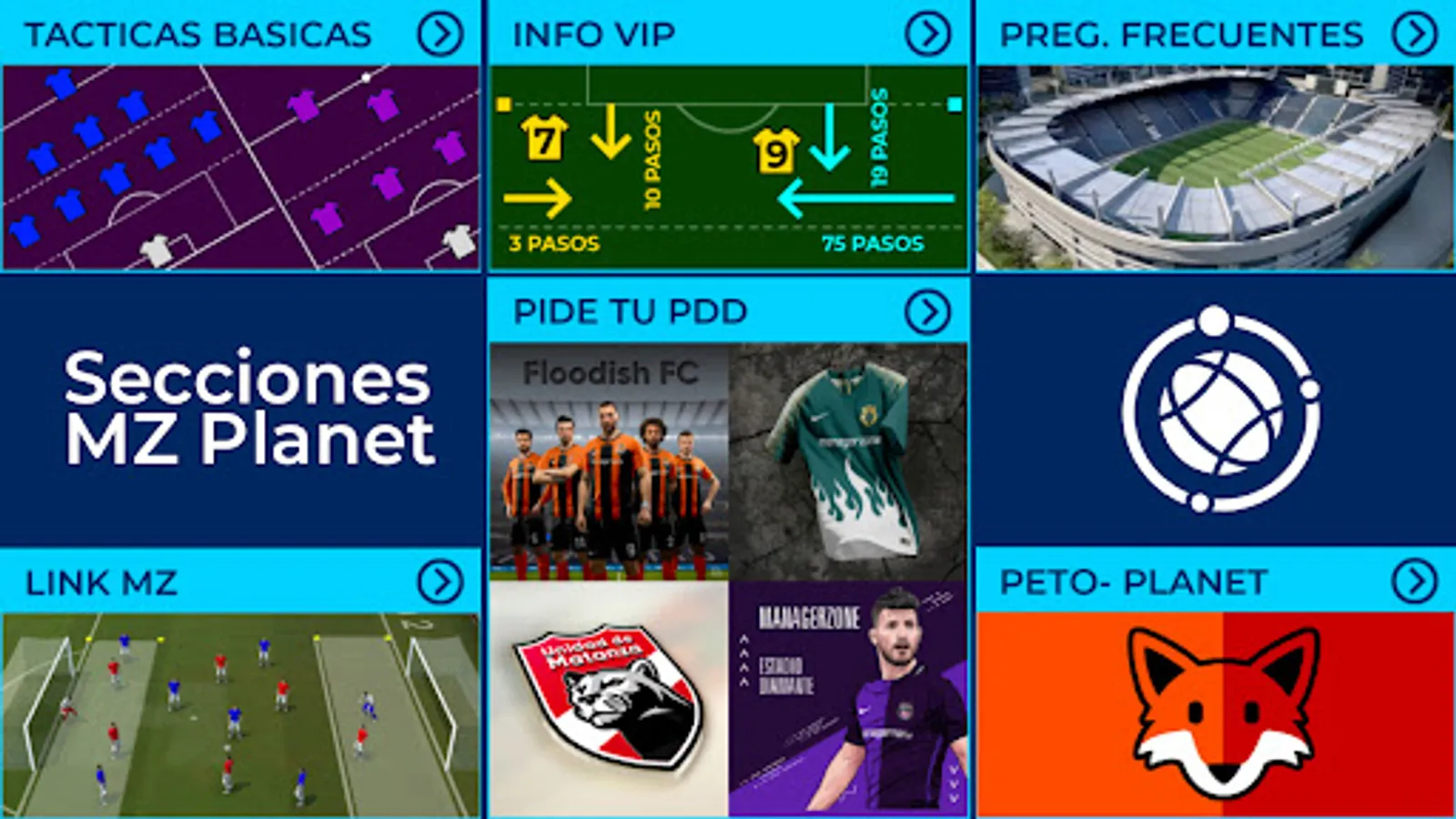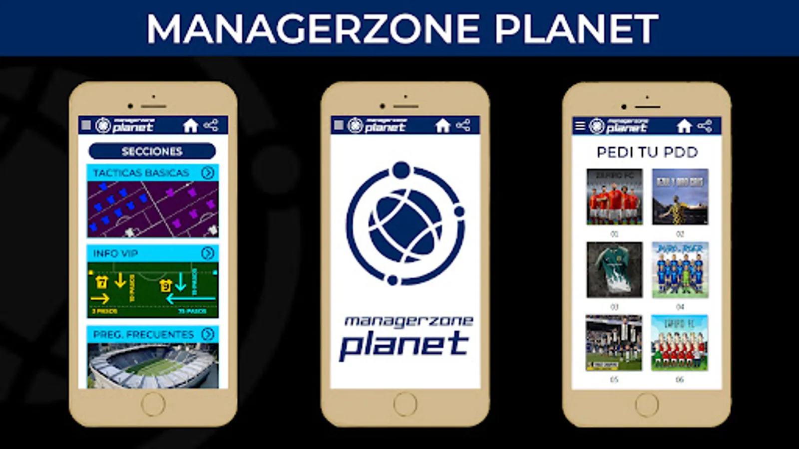 "MANAGERZONE PLANETA" is a free application for users of the Managerzone online game, where you will find rich and varied information, more tutorials, graphics and many tactics to always have at hand, all in an organized and simple way.