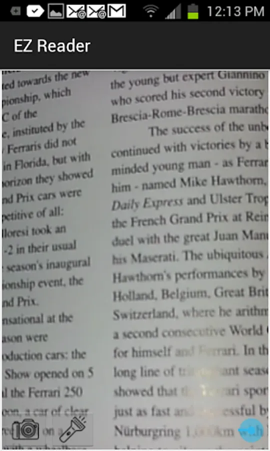 This app was developed to read small text in low light situations, and when you have forgotten your reading glasses. You can zoom in on text, and use the flashlight to illuminate the text that you are reading. It also helps in a low light area such as a restaurant, or an airplane when the area is dark. Use the flashlight to illuminate. If the camera resolution on your phone does not support the zoom, you can take a picture of the text and zoom in with your fingers on the image. Take a picture and save the image, then on the next screen zoom in with your fingers to read the illuminated text.
