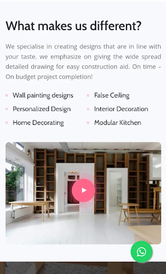 Our Design to Delivery services ensure a hassle free space makeover experience for you. Be it a Home, Office or a Commercial Space we promise to deliver more than what you aspire for.