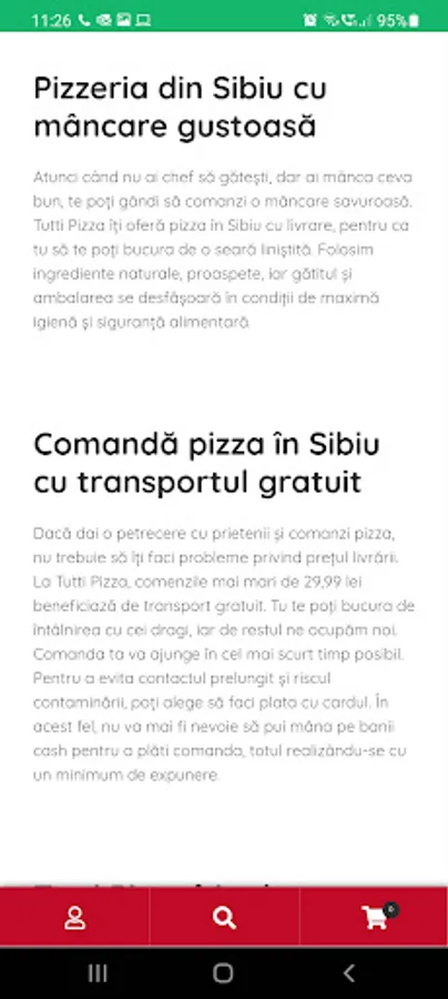 Atunci când nu ai chef să gătești, dar ai mânca ceva bun, te poți gândi să comanzi o mâncare savuroasă. Tutti Pizza îți oferă pizza în Sibiu cu livrare, pentru ca tu să te poți bucura de o seară liniștită. Folosim ingrediente naturale, proaspete, iar gătitul și ambalarea se desfășoară în condiții de maximă igienă și siguranță alimentară.