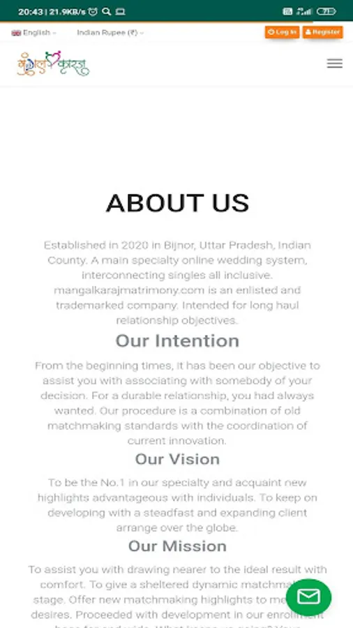 Established in 2020 in Bijnor, Uttar Pradesh, Indian County. A main specialty online wedding system, interconnecting singles all inclusive. mangalkarajmatrimony.com is an enlisted and trademarked company. Intended for long haul relationship objectives.