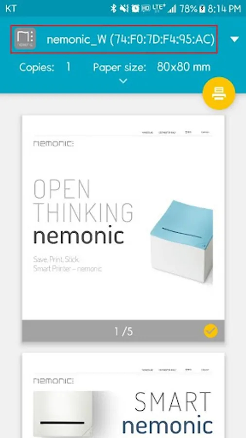 It connects to nemonic app via Bluetooth and prints contents on sticky notes within 5~10 seconds. It could also be connected to a Windows PC to be used as a regular mini printer.