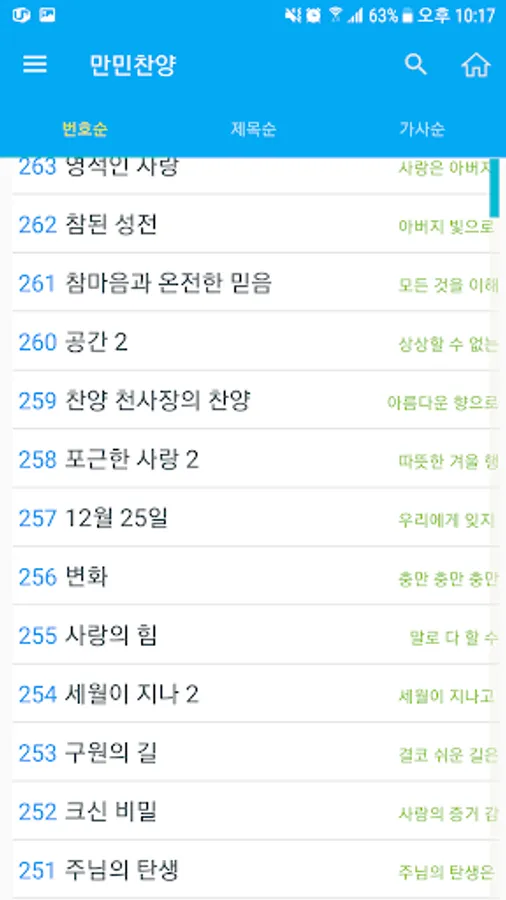 2. The hymn, the peoples praise: Number / Title / Lyrics ordered by supporting automatic scrolling