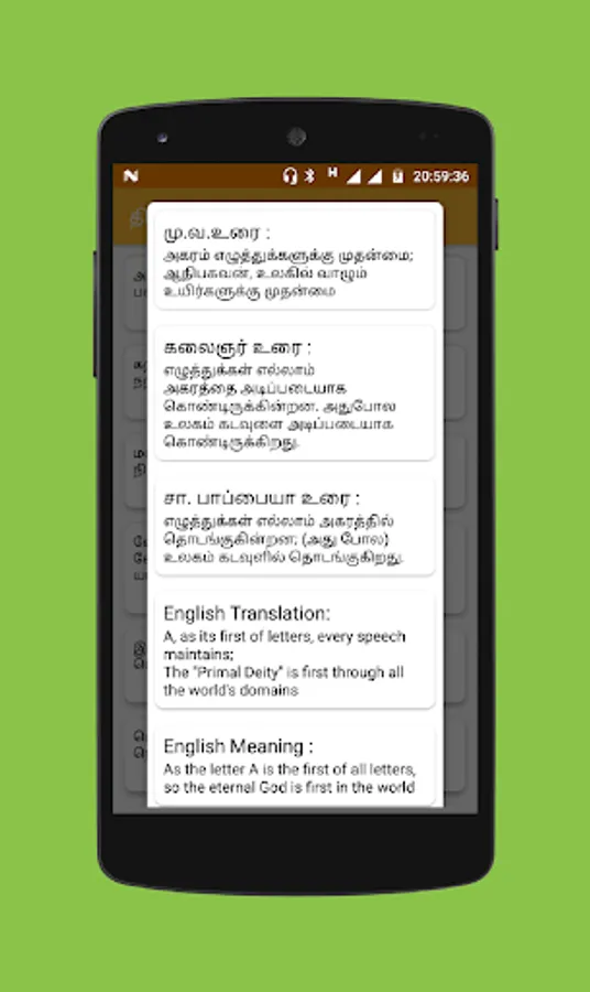 2. 1330 thirukural at one place with explained by Mu Varathanasanar (MuVa), Mu Ka Kalaingar Karunanithi, Solomon Paapaiya and also contains English translation and explanation.