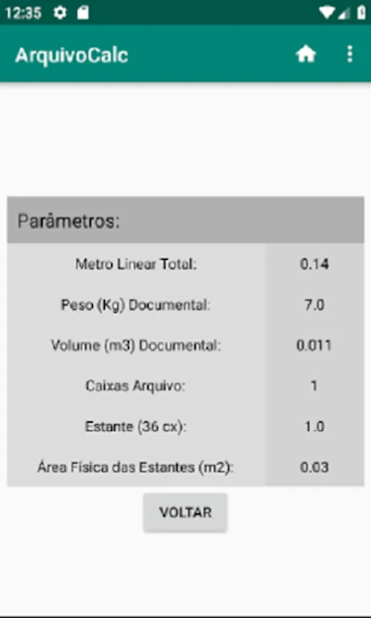 FileCalc is an application that targets textual documents. The application allows you to calculate different file parameters (linear meter, weight (kg), volume (m3), number of file boxes, number of shelves and total physical area) from the input of a parameter among which: file boxes, linear meter, physical area, volume or number of shelves. The parameters number of file boxes per shelf, linear meter of each file box, physical area of each shelf, volume per linear meter, weight per linear meter are edited according to the user's need.