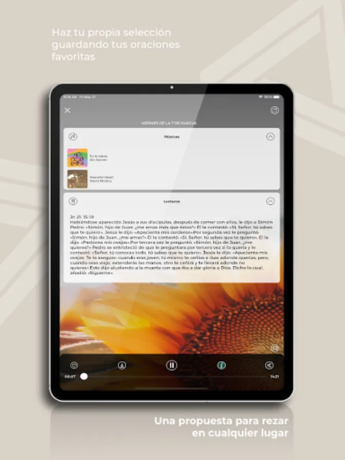 Rezandovoy is a proposal that invites you to live in a key of faith. Prayerfully listening to the Gospel. To the believing look at the world that surrounds us. Each day offers an audio prayer (between 12 and 15 minutes), with readings, silence and music. Because praying is something from all times, from all cultures, which has to do with the most universal pursuits. A time each day to listen on the way to work, in the quiet of your room, in the midst of the vertigo of each day.