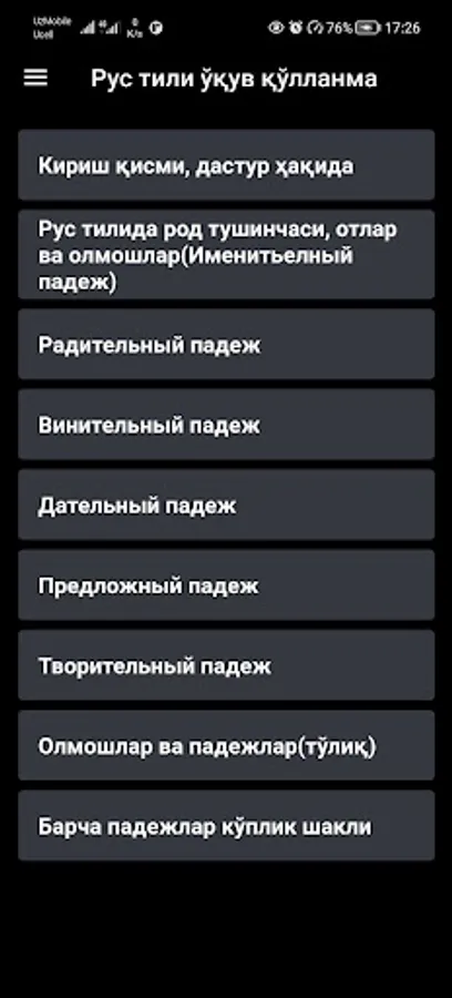 Ushbu dastur orqali siz rus tilini 50% asosiy qoidalar, 50% mashqlar bilan chuqurroq o`rganasiz.