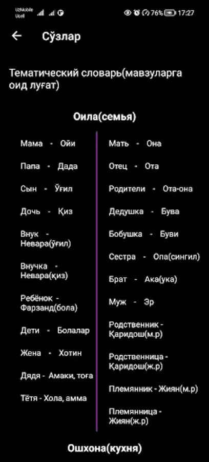 Ilova 2000 ga yaqin so`zlarni o`z ichiga oladi. 1500 ga yaqin so'zlar tarjimasi bilan berilgan.