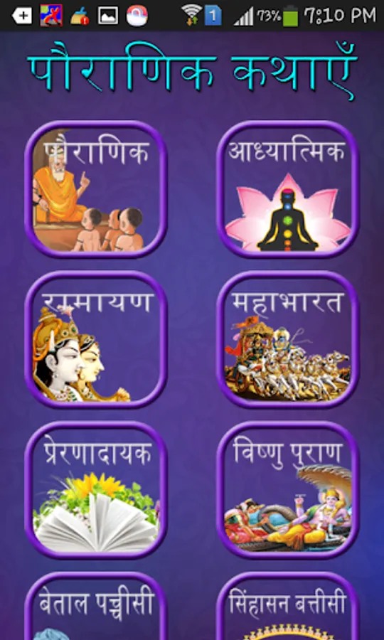 Pauranik(पौराणिक) Kathas application includes large collection of religious ,spiritual and mythological indian Stories in Hindi Language.