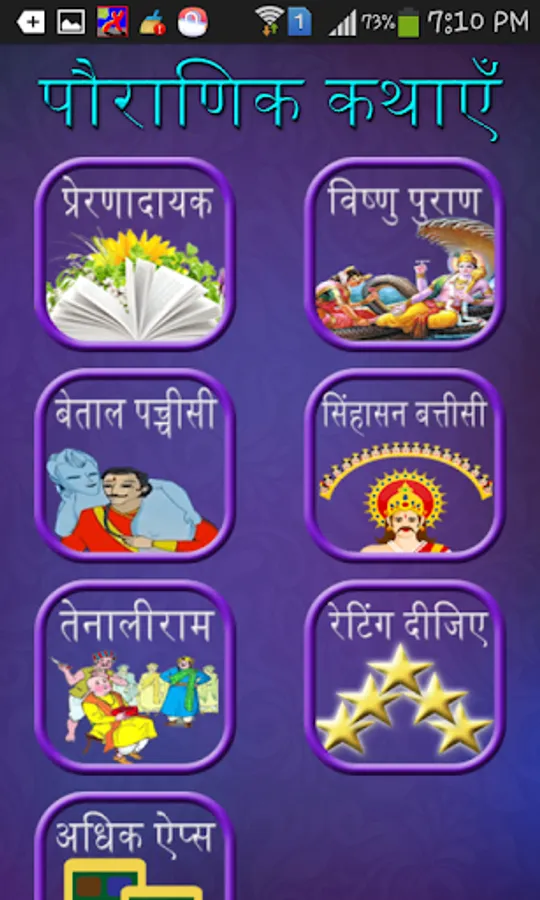 This application describe stories about god , spiritual,motivational,tenali raman, panchtantra,betal pachchisi and much more..