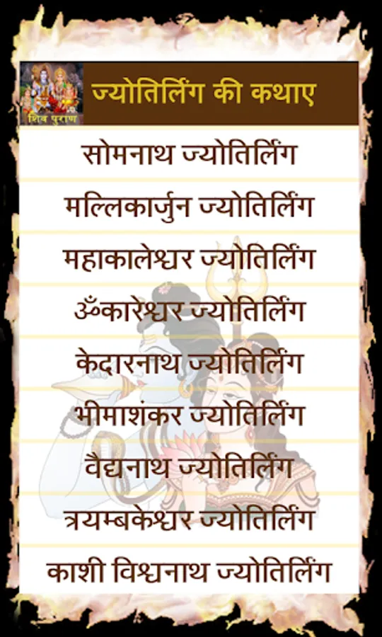 Shiv Puran in Hindi application is collection of Shiv Puran kathas and jyotirlinga kathas in hindi language.