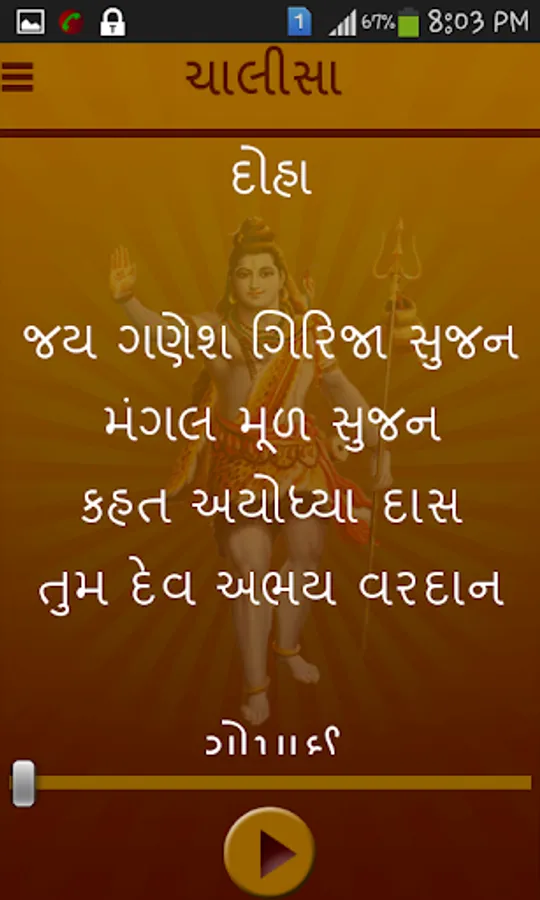 This application contains Shiva Tandav and Chalisa in Hindi language with Lyrics and Audio.