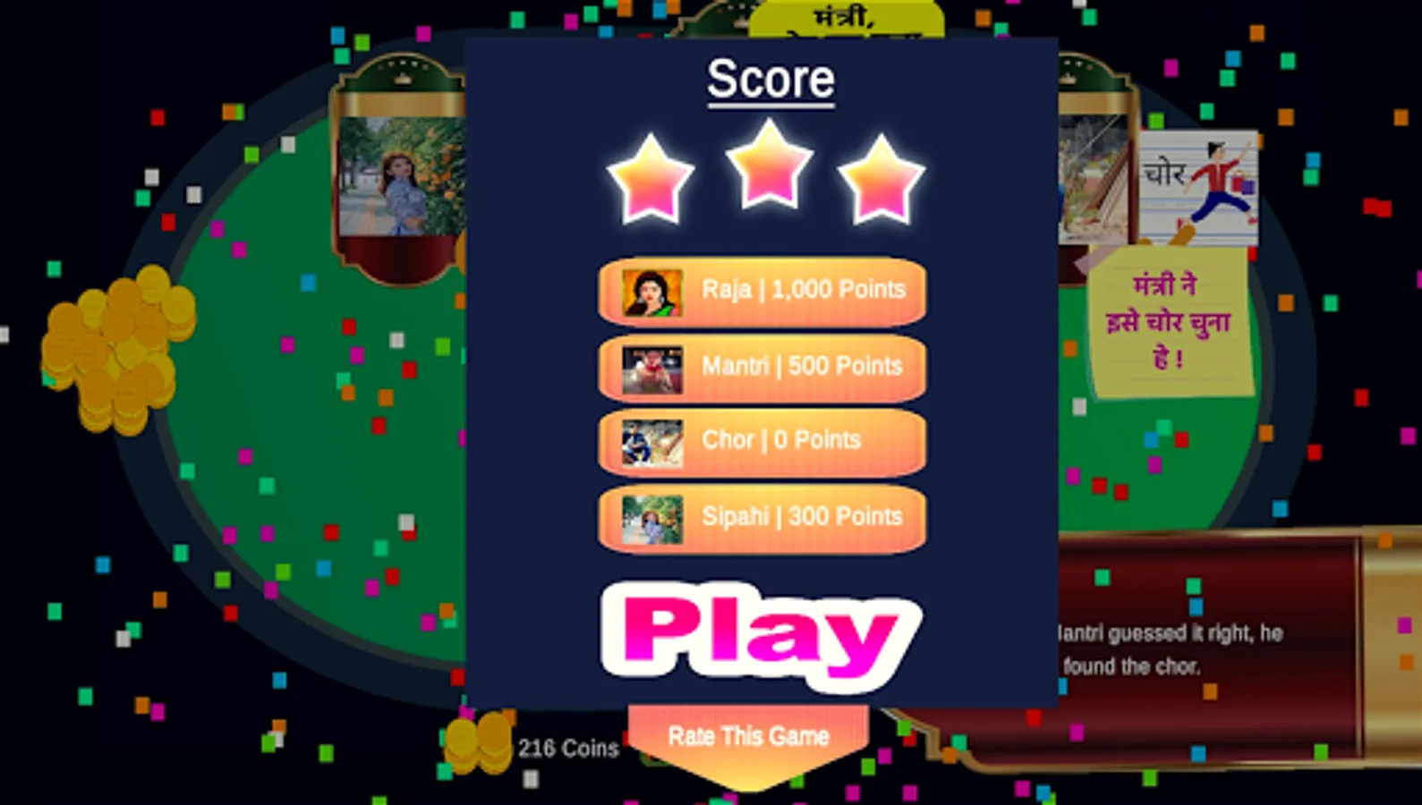 Raja mantri chor sipahi game which is being played by all indian in their childhood. it is a kids game which is free game.