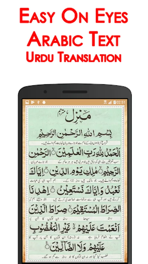 This dua e Manzil is a gift for everyone who wants to read Manzil like they do on regular paper version of Holy Quran. It is easy on eyes and is with Urdu translation.