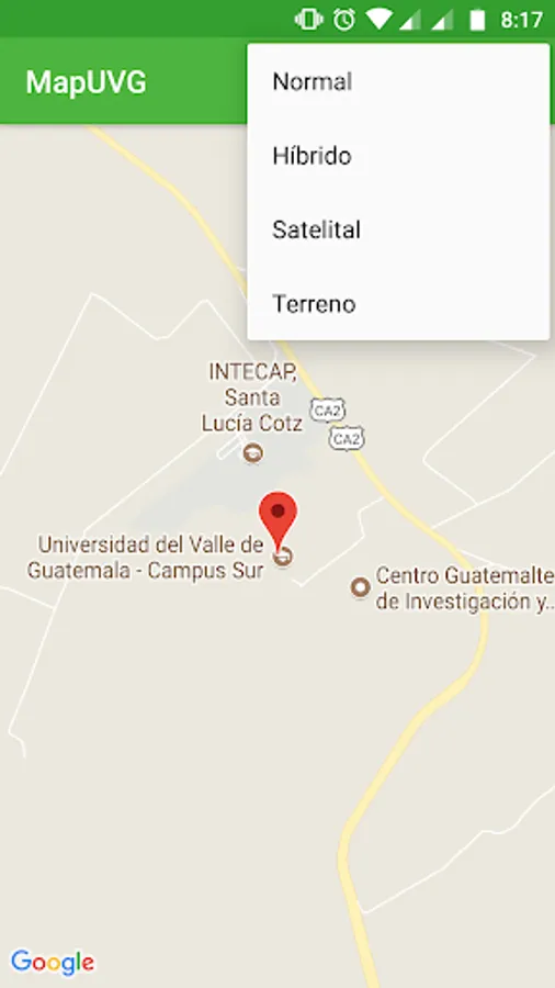 Show the map of the Universidad del Valle de Guatemala South Campus