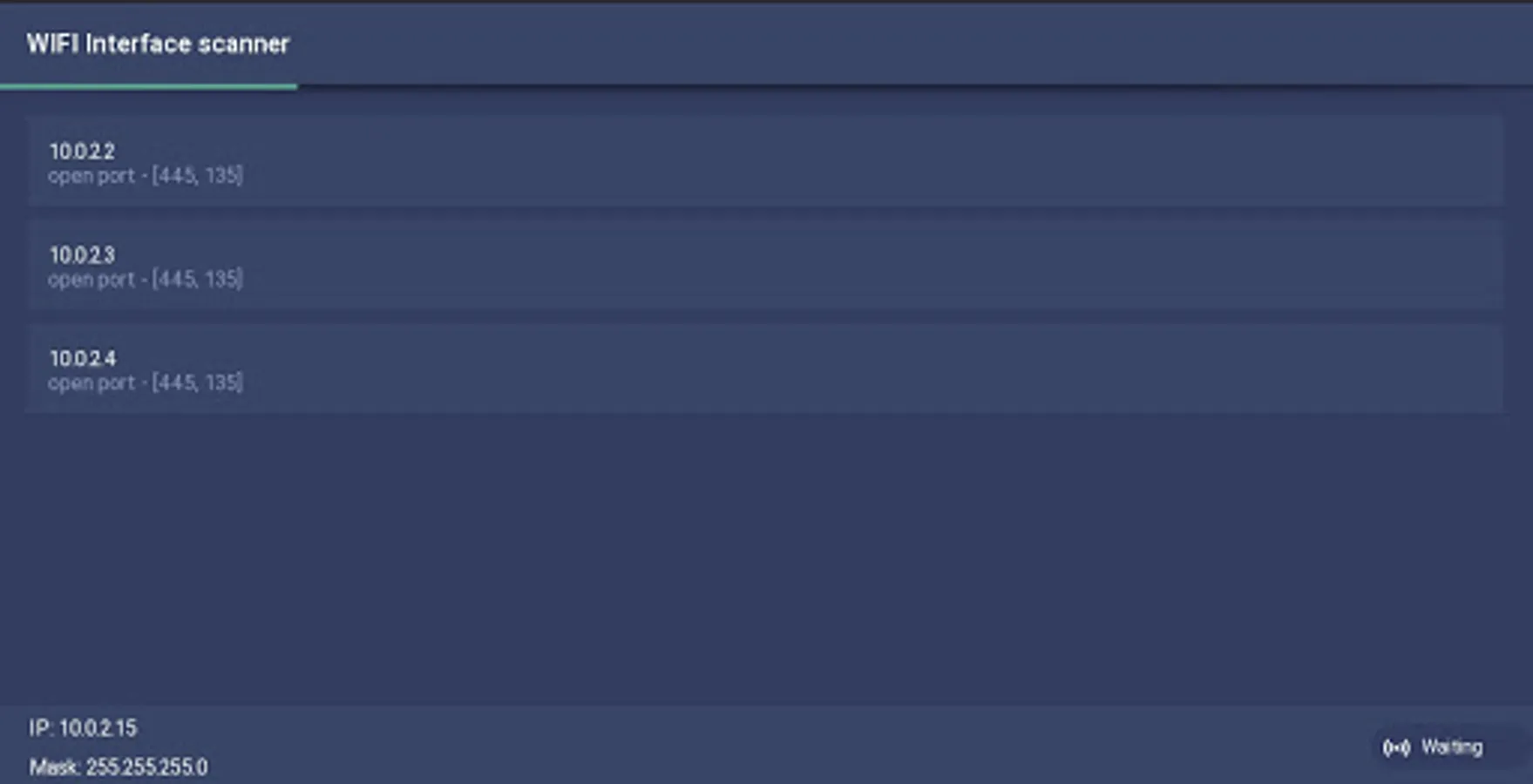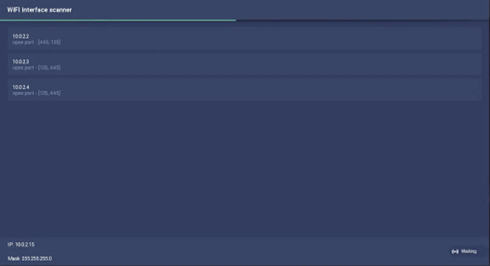 wifi Interface scanner (WFIS) is a utility that allows you to scan your wireless - wifi network for open ports.