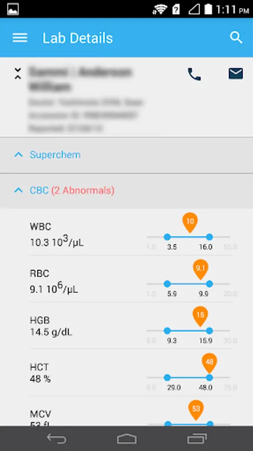 Laboratory Results - Immediate access to all results from the past seven days, organized by sections