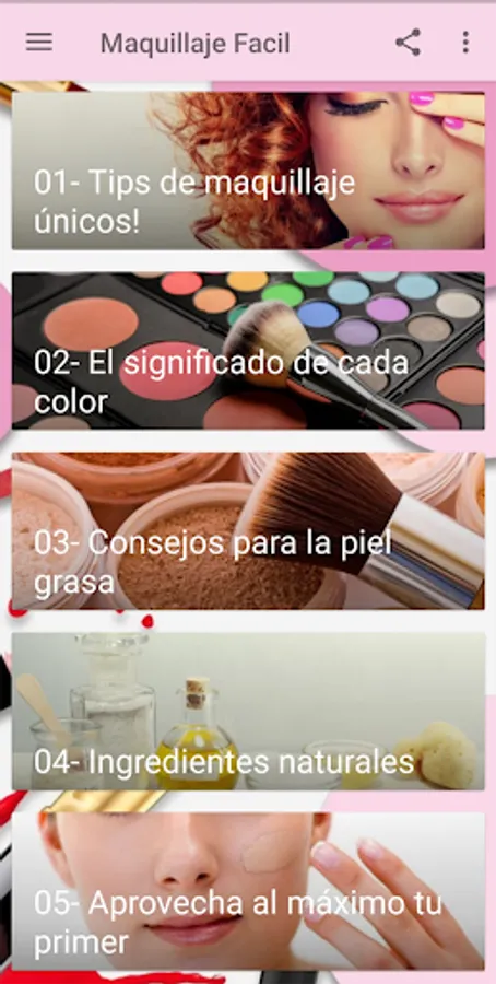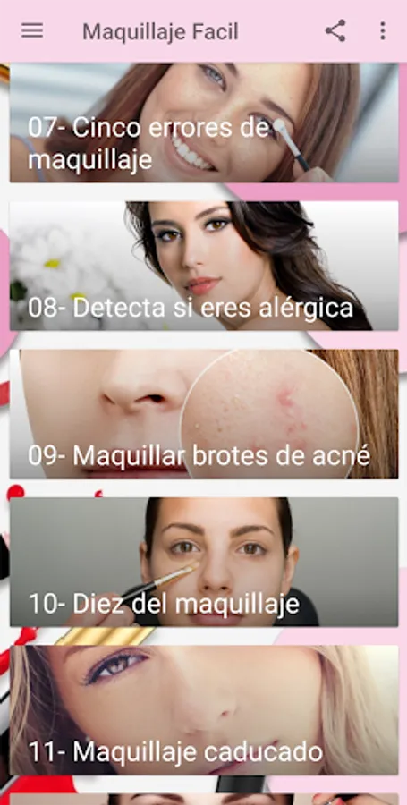 A series of 47 lessons full of illustrations in full color where you can find and learn hundreds of makeup tips that will make you look very pretty at your next event.