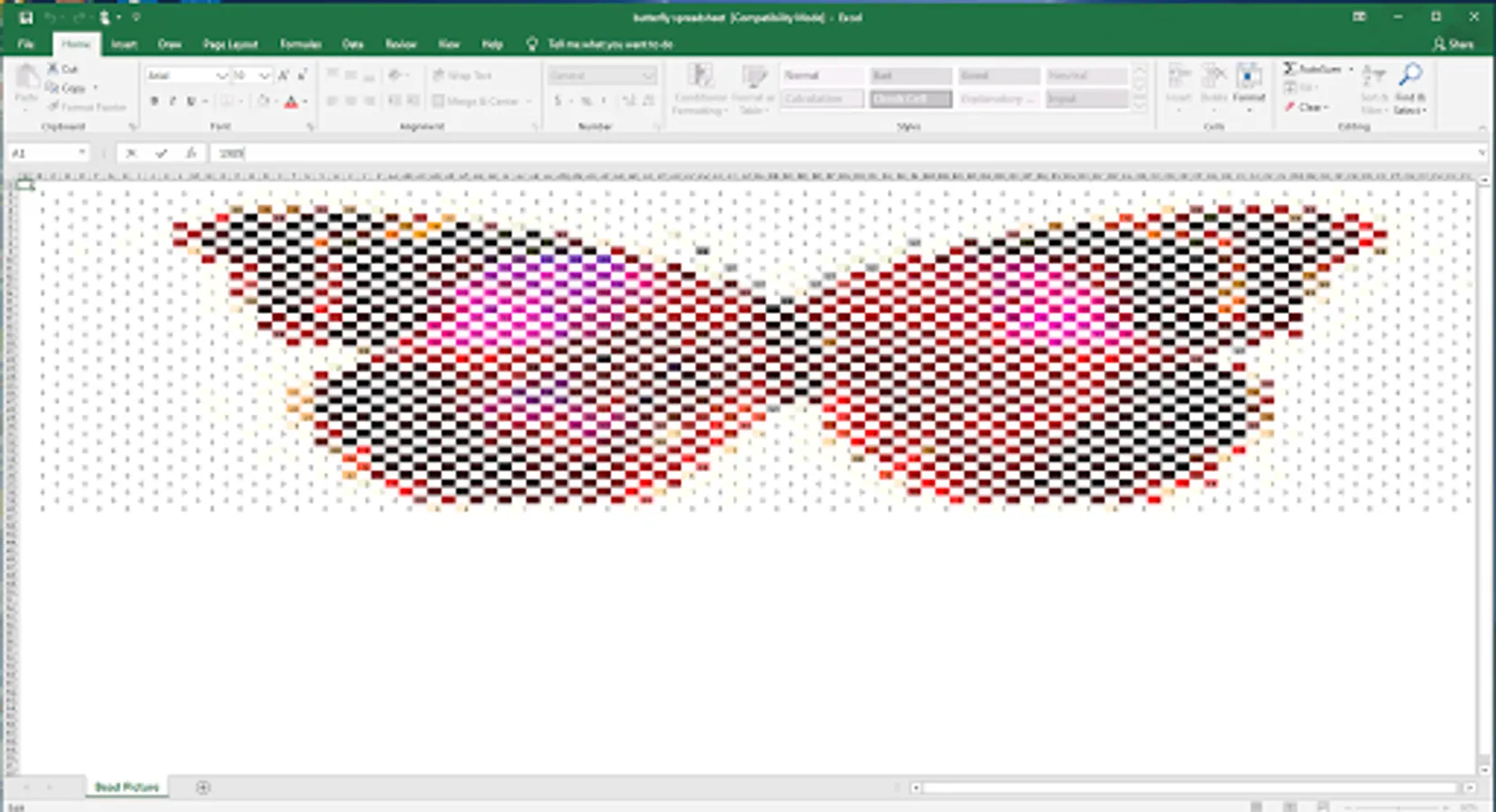 3. an Excel (.xls) file of the beaded picture in peyote format (staggered) that can be converted to an .xlsx file with the colored beaded picture (need to have Conditional Format Rules for the colors in the pattern),