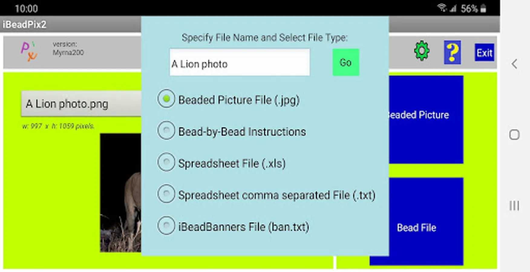 5. a file that can be imported into the companion iBeadBannersEz app (available in the Google Play Store).